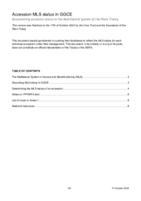 Accession MLS status in GGCE Documenting accession status in the Multilateral System of the Plant Treaty This version was finalized on the 17th of October 2024 by the Crop Trust and the Secretariat…